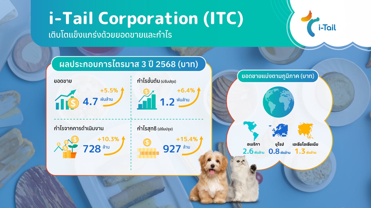 ITC ไตรมาส 3 ฟอร์มสวย ทำยอดขายทะลุ 4.7 พันล้านบาท กำไรสุทธิปรับปรุงโต 15.4 % แตะ 927 ล้านบาท ตอกย้ำความเป็นผู้นำ Wet Pet Food เบอร์สามของโลก