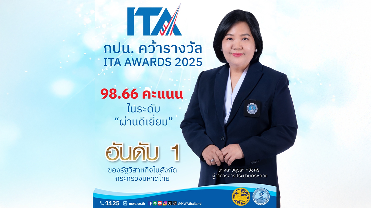 กปน. คว้ารางวัล ITA AWARDS 2025 อันดับ 1 รัฐวิสาหกิจสังกัดกระทรวงมหาดไทย ด้วยคะแนน 98.66 ในระดับ “ผ่านดีเยี่ยม”