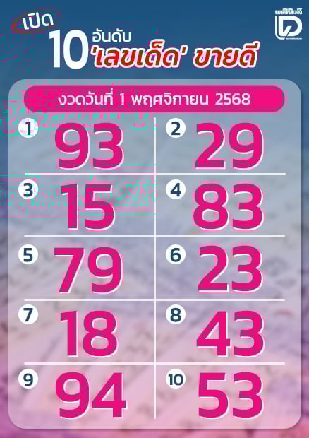 มาแล้วเปิด 10 เลขเด็ด งวดวันที่ 1 พ.ย.68 จับตาเสี่ยงดวง ลุ้นเป็นเศรษฐีใหม่