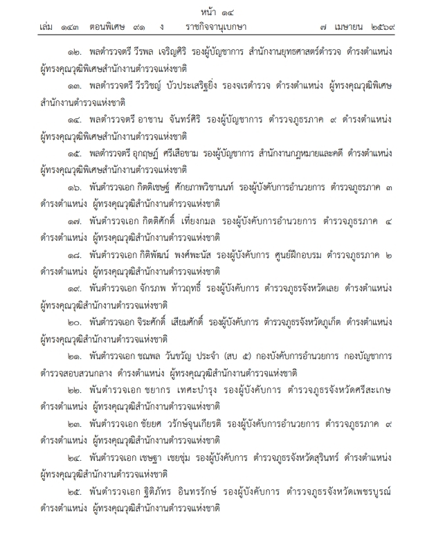 19. พันตํารวจเอก จักรภพ ท้าวฤทธิ์ รองผู้บังคับการ ตํารวจภูธรจังหวัดเลย ดํารงตําแหน่ง ผู้ทรงคุณวุฒิสํานักงานตํารวจแห่งชาติ