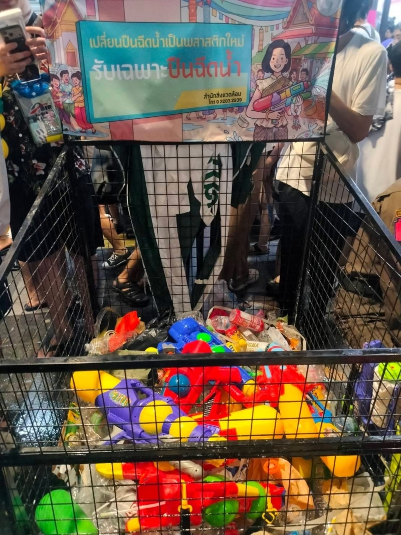 ที่ปรึกษาของผู้ว่าฯ กทม. ระบุว่า การเปิดรับปืนฉีดน้ำในปีนี้ นับเป็นครั้งแรกที่มีการนำปืนฉีดน้ำพลาสติกกลับมารีไซเคิลอย่างเป็นรูปธรรม จากเดิมที่ต้องกลายเป็นขยะทั่วไป คาดว่าจะช่วยลดปริมาณขยะและเพิ่มการนำพลาสติกกลับมาใช้ประโยชน์ได้มากขึ้น จากความร่วมมือของประชาชน ขณะที่ในพื้นที่เอกชนหรือจุดจัดงานอื่น ๆ สำนักงานเขตจะเข้าดำเนินการจัดเก็บขยะ เพื่อไม่ให้มีขยะตกค้าง