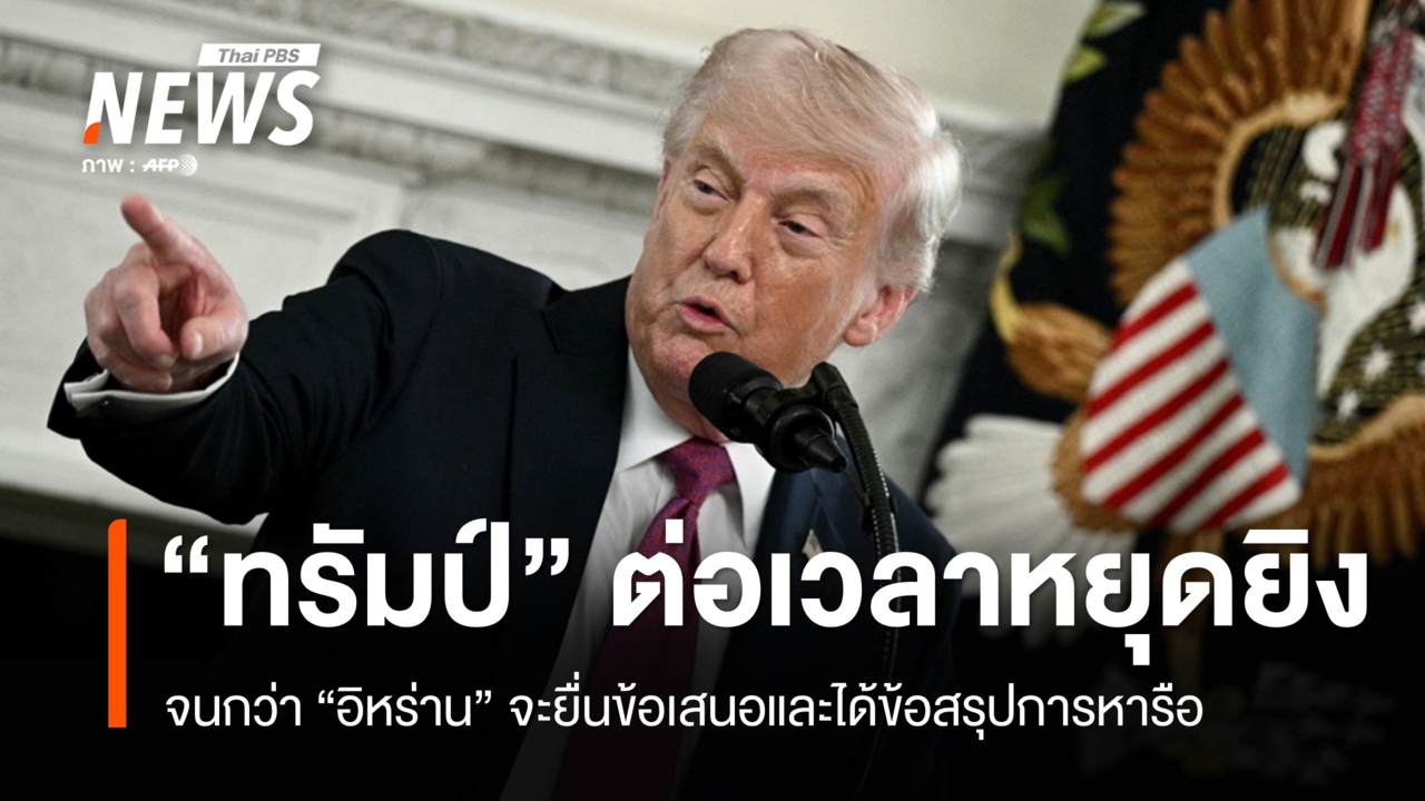 "ทรัมป์" ประกาศขยายเวลาหยุดยิงจนกว่าอิหร่านจะยื่นข้อเสนอและการหารือจะได้ข้อสรุป สั่งกองทัพเดินหน้าปิดล้อมทางทะเล ด้านอิหร่านตัดสินใจไม่เจรจากับสหรัฐฯ ที่ปากีสถานวันนี้ (22 เม.ย.2569) โดนัลด์ ทรัมป์ ประธานาธิบดีสหรัฐอเมริกา ประกาศขยายเวลาหยุดยิงกับอิหร่านออกไป จนกว่าฝ่ายอิหร่านจะยื่นข้อเสนอ และจนกว่าการหารือจะได้ข้อสรุป ซึ่งระหว่างนี้ทรัมป์สั่งการให้กองทัพเดินหน้ามาตรการปิดล้อมทางทะเลต่ออิหร่าน และให้เตรียมความพร้อมในด้านอื่นๆ อย่างเต็มกำลังต่อไปด้วย