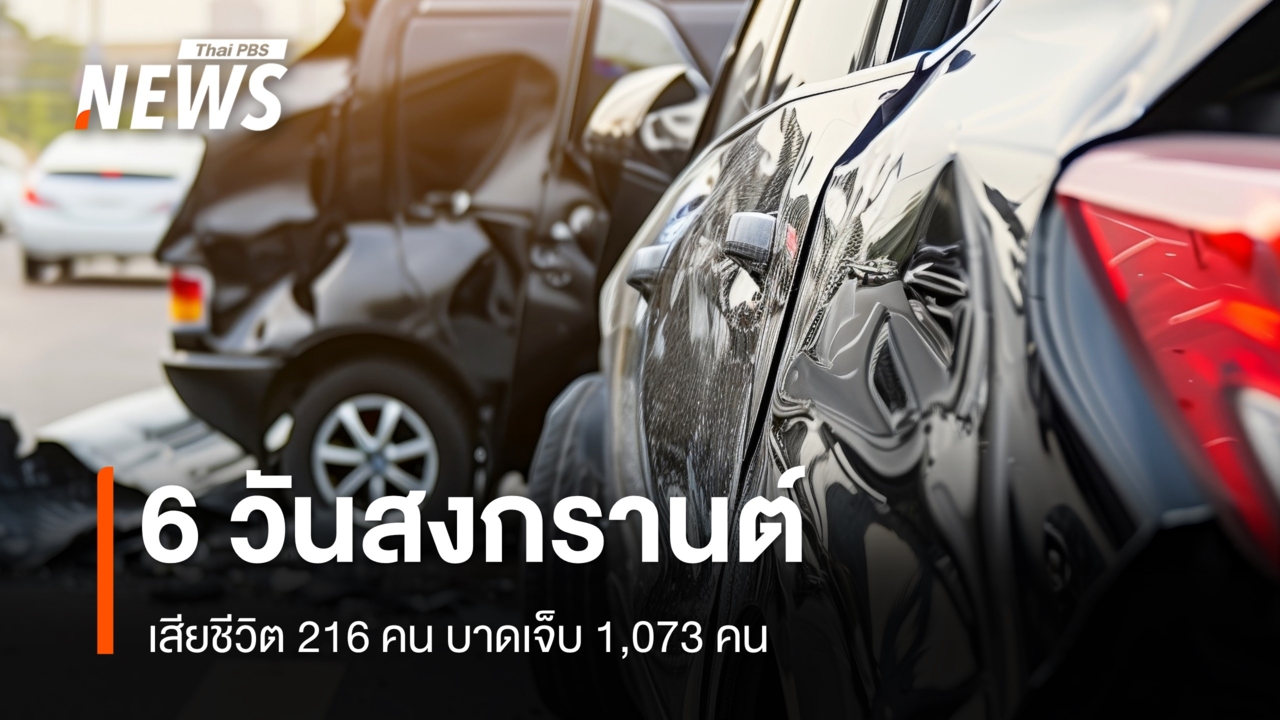 ศปถ.แถลงสรุปสถิติอุบัติเหตุทางถนนช่วงเทศกาลสงกรานต์ 2569 สะสม 6 วัน เกิดอุบัติเหตุรวม 1,108 ครั้ง ผู้บาดเจ็บ รวม 1,073 คน ผู้เสียชีวิต รวม 216 คน บูรณาการรับมือประชาชนเดินทางกลับ คุมเข้มความปลอดภัยรถโดยสารและพนักงานขับรถ แอลกอฮอล์ต้องเป็นศูนย์
